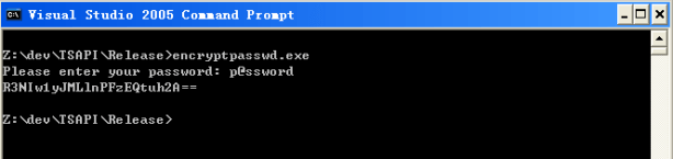 - Execute the program, generate the encrypted passwords for the CT user of AE server, then paste the encrypted password to parameter ab_tlink. For example, the encrypted password for “p@ssword” is “R3NIw1yJMLlnPFzEQtuh2A==”