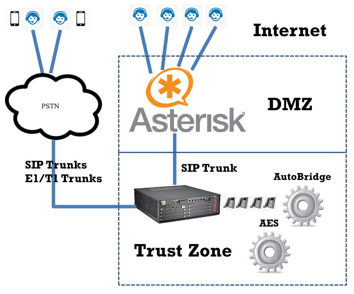 If you are using SIP phone, this solution required SIP trunks setup between the Avaya and Asterisk. Home agent using SIP phone (a hard SIP phone is preferred for better voice quality and easy of control) to connect to the Asterisk over the Internet. When the home agent login to ACD using his/her CRM application, the AutoBridge knows which Asterisk extension to be bridged with the Avaya extension that the agent is engaging in a call. The AutoBridge protects your existing Avaya investment, no modification of your CTI or CRM is required to implement the Home Agent solution.