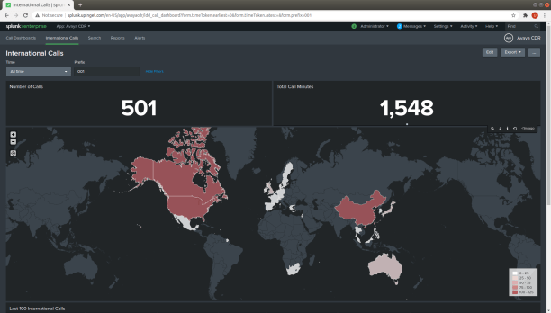 When you send the CDR to this Splunk App, you can see the following Call and International dashboards. Enjoy!