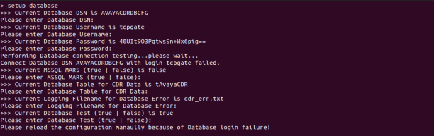 - To configure the database logging, enter “setup database“.